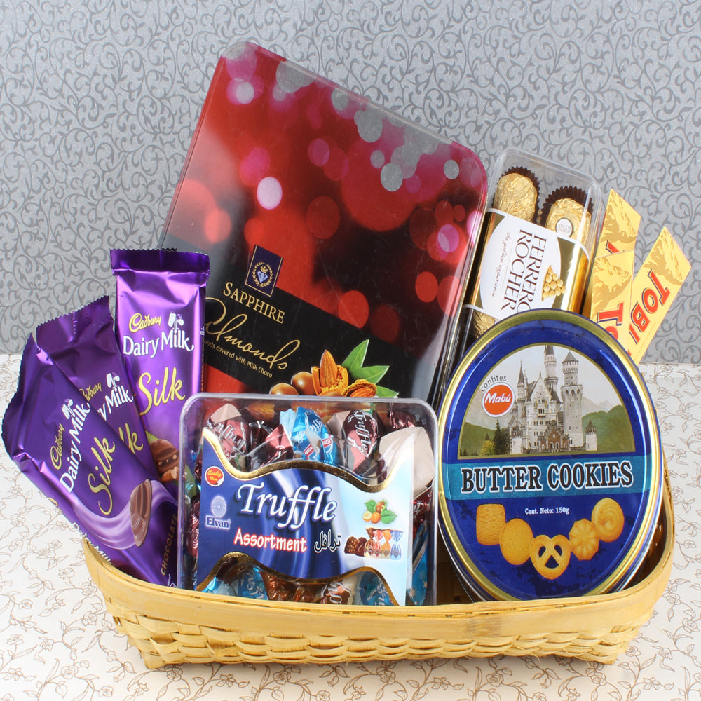Chocolates overloaded with taste and flavor and teamed up with alluring presentation will add sweetness to every celebration. If you are searching for an effective chocolate home delivery service, then, the search is over now. Our chocolate hampers online will effortlessly take your gifting game up a notch. our Chocolate Hampers compliment with dry fruits, sweets, good luck plants and greeting cards. Just scroll through our site and order chocolates online for your dear ones to add sweetness and warmth in your every celebration.