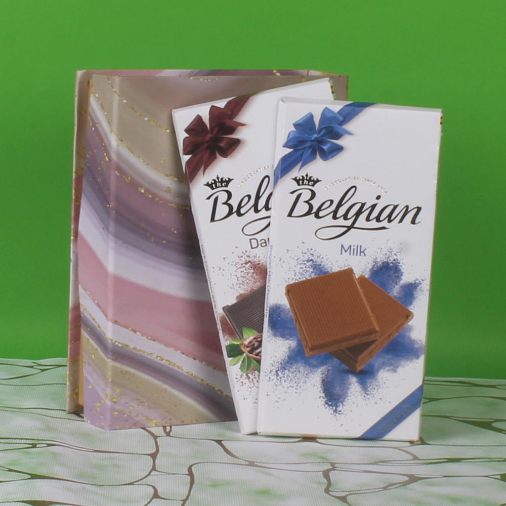 Experience the luxurious indulgence of our exquisite Belgian Chocolate assortment! This product features any two assorted flavors of delectable Belgian chocolates, each weighing 100 Gms. Delight your taste buds with a symphony of rich flavors, from velvety smooth milk chocolate to decadent dark chocolate and everything in between. Crafted with precision and passion, these chocolates offer a delightful escape to a world of pure bliss. Indulge in moments of self-indulgence or surprise your loved ones with this opulent and thoughtful gift. The perfect blend of taste and quality, our Belgian chocolates are meticulously crafted to captivate your senses and elevate your chocolate cravings. Embrace the essence of pure luxury and let your palate dance with joy. Treat yourself or make someone's day with the unmatched goodness of Belgian Chocolate, a timeless delight that will leave a lasting impression.
