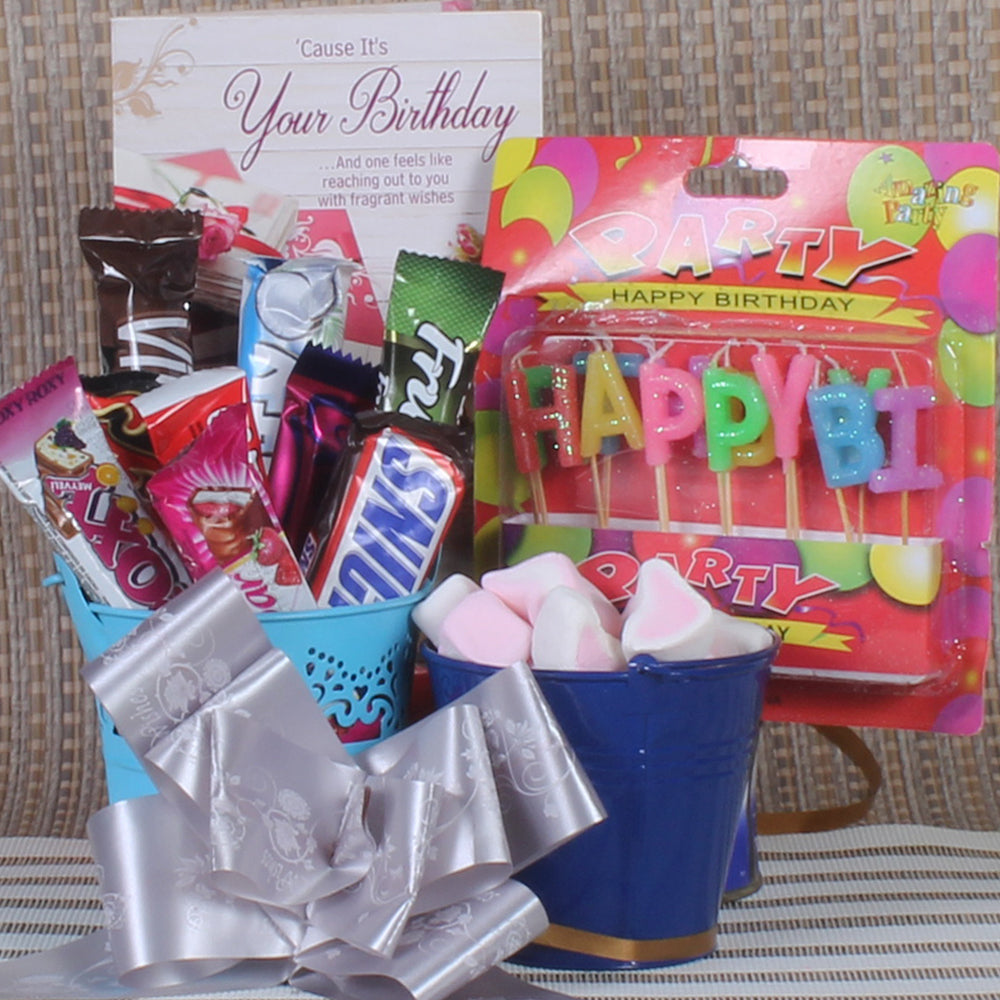 Celebrate the best day of the year with this Birthday Special Chocolate and Marshmallow package! Light up the occasion with the Happy Birthday Candles and spread the cheer with a special Birthday Greeting Card. Munch on an assorted collection of imported chocolates and savor the flavor of marshmallow candies - all packed in a bucket, ready for an exciting adventure!