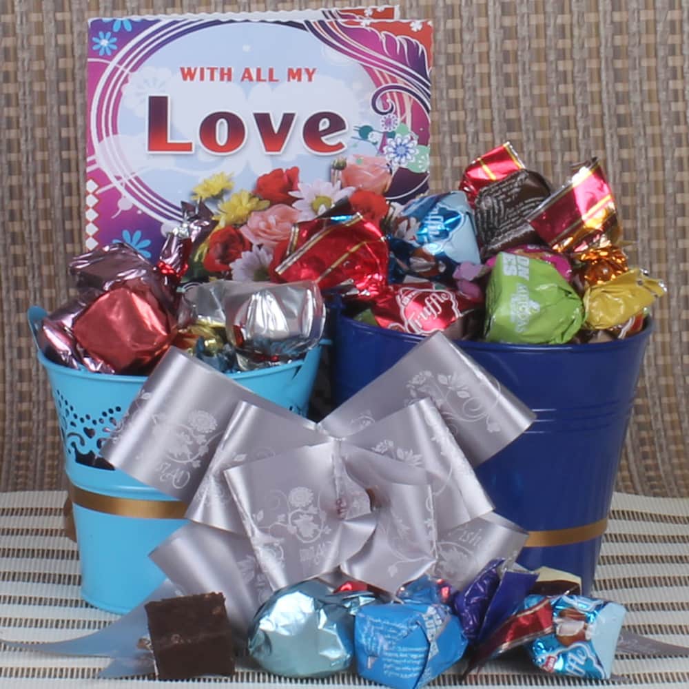 Send your love in a truly unique way with our Chocolate Bucket for Love One! This bucket is overflowing with delicious treats, including a home-made 300gm chocolate and 500gm mix of truffle chocolates. And don't forget the love greeting card included to show just how much you care. Give the gift of tasty love today!