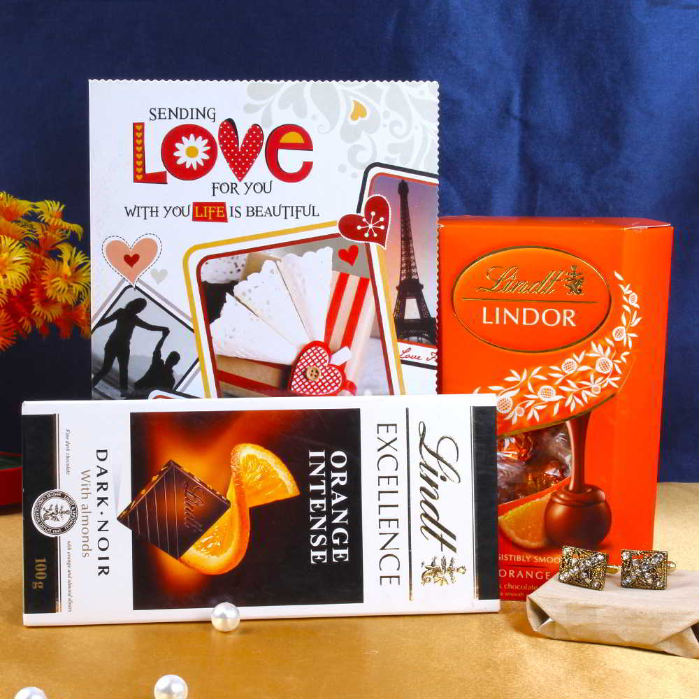 Lindt Chocolate and Golden Cufflink Love Gift
